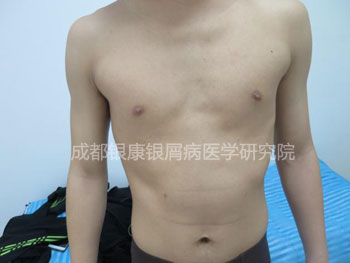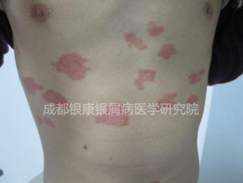 针对他的病情以及他的身体状况,医生为他制定了治疗方案,一个疗程治疗后,身上的皮损已经渐渐消除,仅留有少许色素沉淀斑块,医生为他制定了巩固方案,巩固治疗一周后,各项指标均达到了正常的水平,残余的色素沉淀斑块也完全消退。出院后只要遵循良好的护理,银屑病的复发几率是非常渺小的。