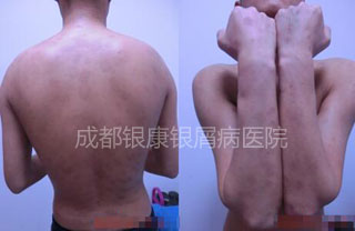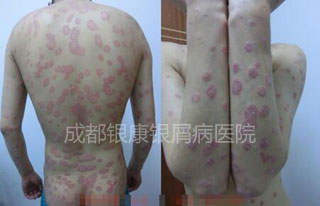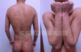 维权无门的丘某自咽苦水,继续自行使用卤米松等激素药物进行治疗。终于在去年秋天再也控制不住皮损的大面积爆发与加重,求助于病友与媒体。当在四川电视台上看见《来自上帝的纹身》的节目时,丘某自己所经历的一幕幕往事涌上心头,节目未结束他就给节目组去了电话并联系到了成都银康银屑病医院,约好时间决定前去治疗。》》》观看《来自上帝的纹身》系列节目
