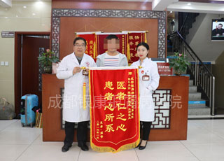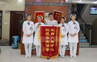 此次来院进行复查,清扬特意带来了两面锦旗,一面送给了带他走上正规治疗之路的戴礼医生,一面送给了日夜照顾他的医护人员们。