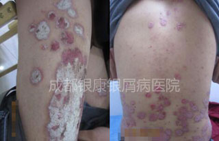 若不是因为因为身上的皮损发生了让人恐惧的变化,清扬到现在可能也不会想到找专业机构治疗。去年刚入秋,清扬身上的皮损又开始大面积复发,这次复发还伴随着大面积的小脓疱,有脓疱的地方连碰一下都疼。这时候家人在收看了《来自上帝的纹身》节目后,坚决送他到成都银康银屑病医院进行治疗。