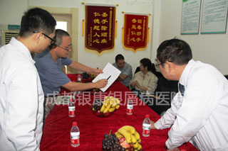 同年11月,美加银屑病专家技术交流访问团第一次来到成都银康做技术交流工作,在参观了医院和体验了中西医结合治疗后,双方还就银屑病治疗中西方差异的问题展开了热烈的讨论,对中西医结合治疗银屑病确定了方向。专家访问团也表示他们此行的目的主要是考察我国医院和科研机构对皮肤病问题研究的现状,探索建立更为有效的皮肤病诊疗合作交流模式。来自美国华盛顿大学医学院的皮肤科主任伯纳德·葛菲教授对我院研究取得的成绩表示赞赏,他提出把成都银康银屑病医院对于银屑病的研究科目列为此次中国之行重点考察与合作对象之一,并同意在疾病资料建设、医院医护人员培养和研究疑难性皮肤病等问题上给予支持。如需帮助,您可点击拨打免费热线:400-181-8725