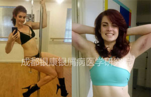 外媒报道:今年24岁的Rhiannon White毕业于西英格兰大学,现在的她在钢管舞事业上大放光彩,人们可能永远都不敢相信这样的女孩竟然患有严重的牛皮癣,牛皮癣已经覆盖了她整张脸和她身体80%的面积。